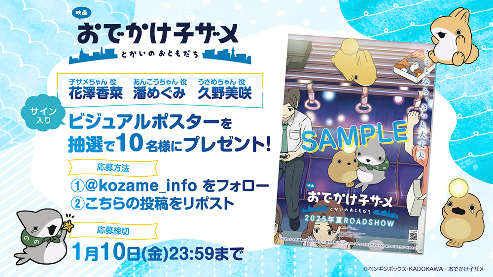 新キャスト・キャラクターの公開を記念して、子ザメちゃん役 花澤香菜さん、あんこうちゃん役 潘めぐみさん、うさめちゃん役 久野美咲さんのサイン入りキービジュアル第1弾ポスターが抽選で10名様に当たるプレゼントキャンペーンを公式Xにて実施いたします。