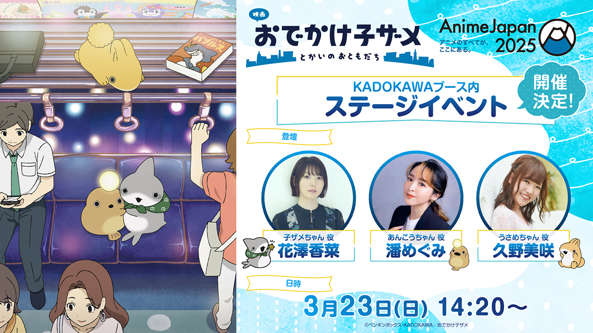 3/22(土)〜3/23(日)に開催されるAnimeJapan2025にて、KADOKAWAブースステージで『映画 おでかけ子ザメ とかいのおともだち』ステージの開催が決定いたしました。