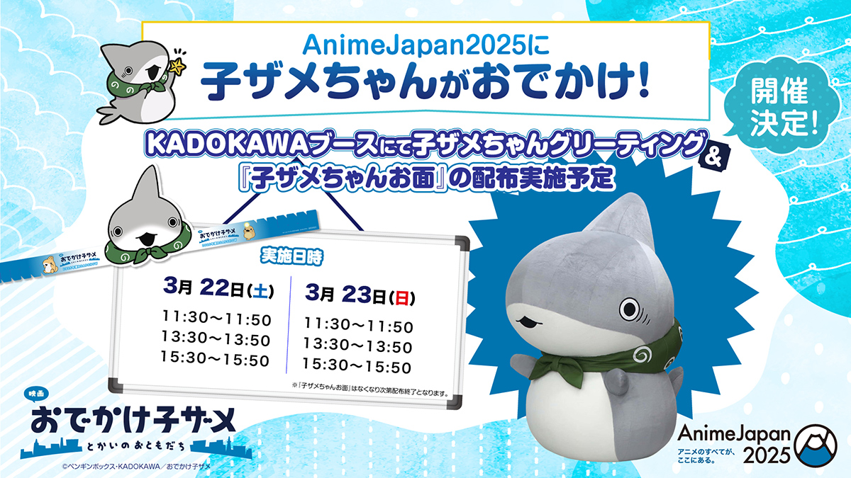3/22(土)、23(日)開催“AnimeJapan 2025”KADOKAWAブースにて、子ザメちゃん着ぐるみとのグリーティング、「子ザメちゃんお面」の配布が決定しました!