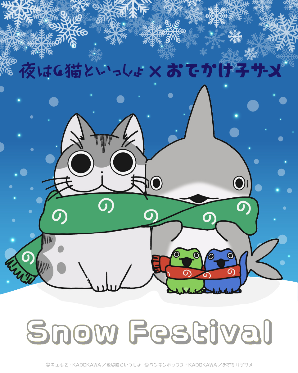 アニメ『夜は猫といっしょ』と『おでかけ子ザメ』のコラボ雪像が、「さっぽろ雪まつり」に登場します!