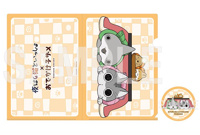 アニメ「夜は猫といっしょ」と「おでかけ子ザメ」から、缶バッジ&クリアファイルセットが登場!