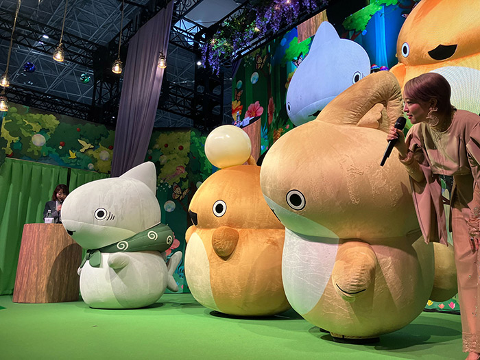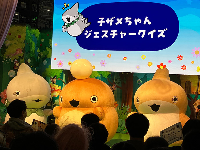 ステージ後半では、子ザメちゃん、あんこうちゃん、うさめちゃんの着ぐるみがよちよちと可愛らしく登場し、会場中から黄色い歓声が上がります。提灯を光らせてアピールするあんこうちゃんや、元気いっぱいのうさめちゃんは、実は今回のAnimeJapanが初お披露目。そんな愛らしい着ぐるみたちと一緒に「ジェスチャーゲーム」コーナーへ突入します。